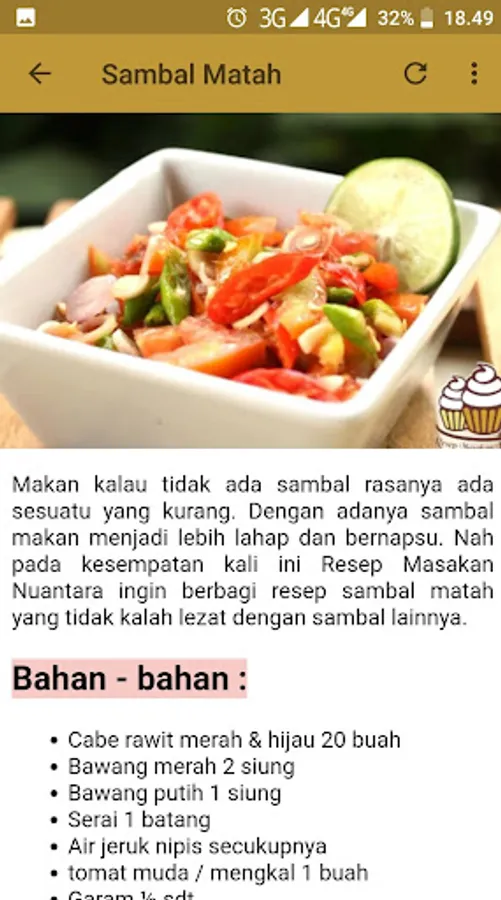 This offline chili recipe application contains various complete chili recipe made by RMN or Nusantara Recipes which is a collection of various kinds of chili recipe in Indonesia so that it can facilitate the users of this application to practice it.