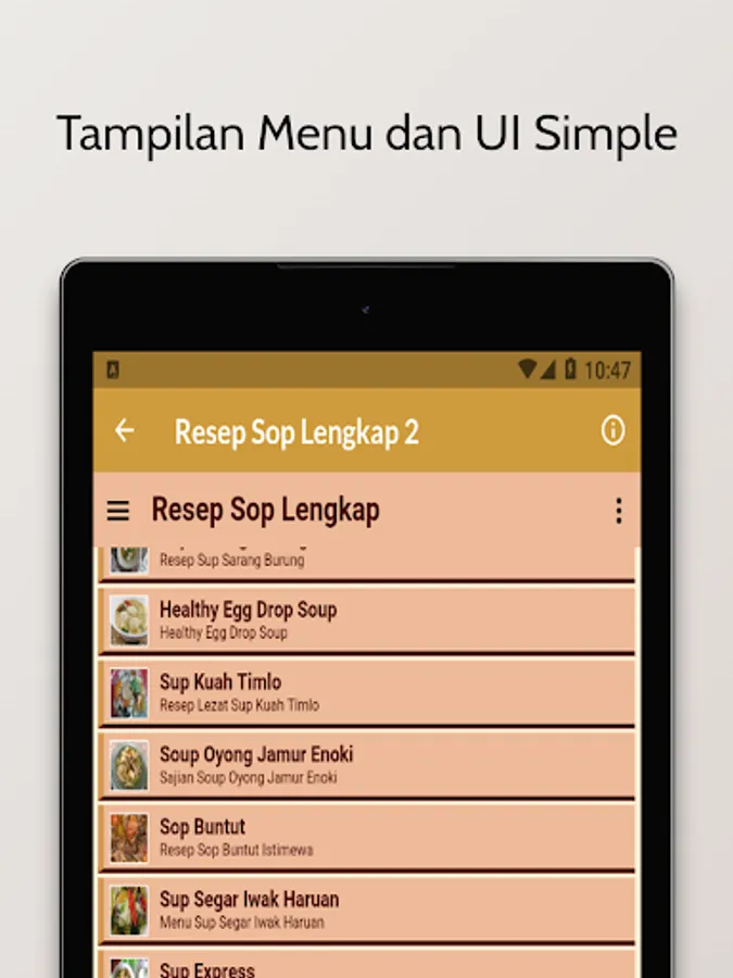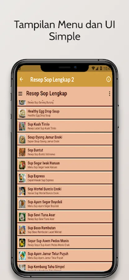 Get the latest application from us. Complete Easy Sop Recipes can be obtained through each of your Android phones easily, recipes for easy and practical home soup where this application is made to make it easier for all of us to learn and certainly present as a reference for simple home-cooked chicken soup recipes. new version. Sometimes we have trouble getting a complete collection of various complete and easy soup recipes? Difficulties to get the current How to Make Delicious Tasty Spicy Chicken Soup Recipe? Here is what we present with the Tasty Tasty Tasty Vegetable Soup Recipe for Making Nagih Latest Apk Version which is an important reference for all of you. Through the application of Healthy Vegetable Soup Recipes that are favored by Children we can get a lot of learning Collection of Various Complete and Easy Made Sop Recipes, besides that it can also be easily played through your Android device respectively.