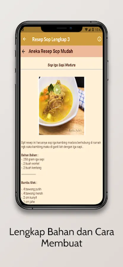 In the application there are Typical Archipelago Unique Sop Recipes which are summarized easily for you to practice everyday which will always be the latest and updated. As a complement to Healthy Soup Recipes, Suitable for Eating During the Rainy Season then, Recipe for Clear Goat Soup in one application can be an addition to our study and practice. Don't miss to get Complete Complete Sop Sop which will always be updated for all of you, of course you will never lose to download this Complete Soup Recipe application !! What are you waiting for, download it right now.