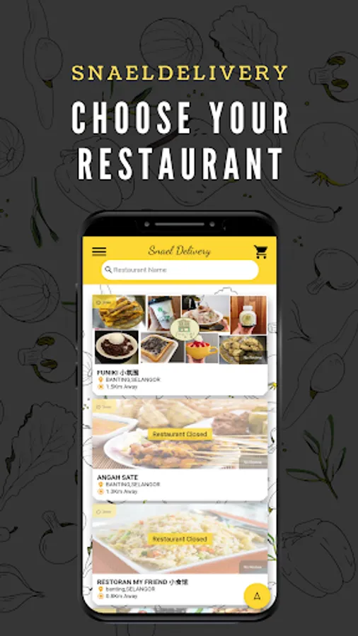Choose your desired restaurant and place an order. Enter your delivery address and our SnaelRider will bring you the food all the way from restaurant to your front doorstep !
