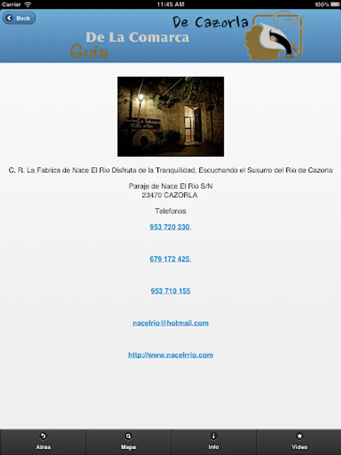 In this guide you will find information of the 9 municipalities of the District of Cazorla (Cazorla, La Iruela, Santo Tomé, Chilluevar, Peal de Becerro, Quesada, Pozo Alcon, Huesa and Hinojares, with their districts, such as Burunchel and Arroyo Frio) Museums, Tours, Hotels, Restaurants, Cafes, Pubs, Activities, Business Zone, Phones, Videos ..., including discounts and offers, for the Region of Cazorla