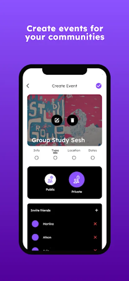 * Being that one solution to ugly group chats and cancelled plans! Uniconn lets its users create private events, so that you and your friends can enjoy being on the same page about every plan you make!