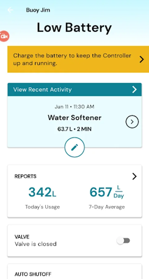 Our most advanced water solution, however, is the Buoy Whole Home Water Controller. With the Controller installed on your home's main water line, the Resideo Home app helps you manage your water and protect your home.