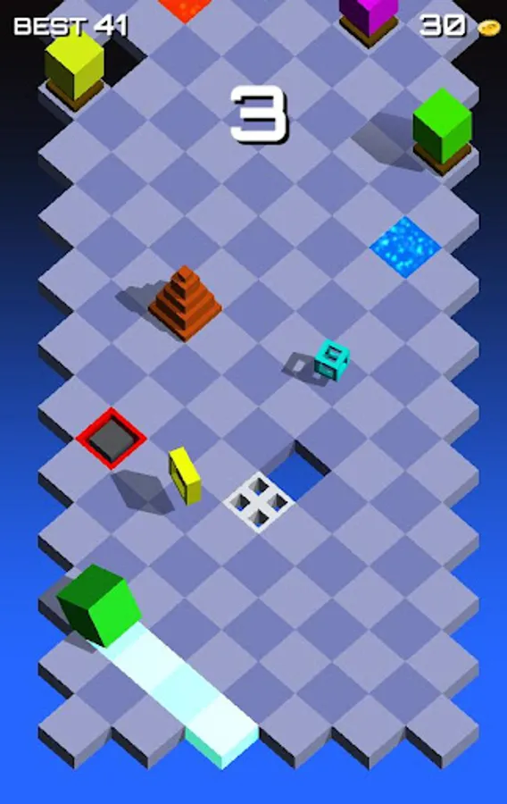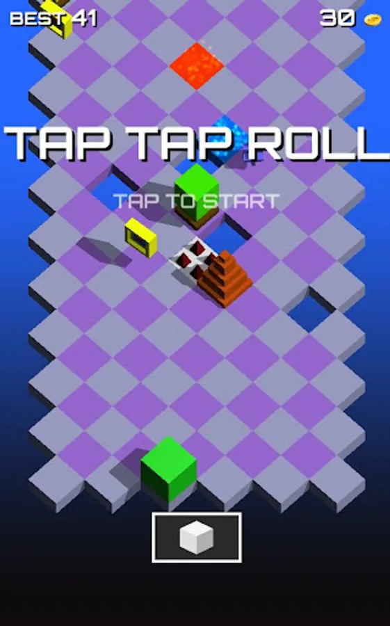 In Tap Tap Roll the player needs to react quickly as the cube rolls through an exotic world. Help the little cube avoid the deadly obstacles, traps, pits in order to survive and collect coins to unlock new characters, there're many of them!