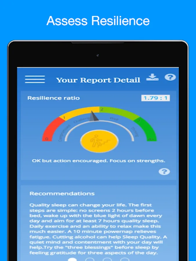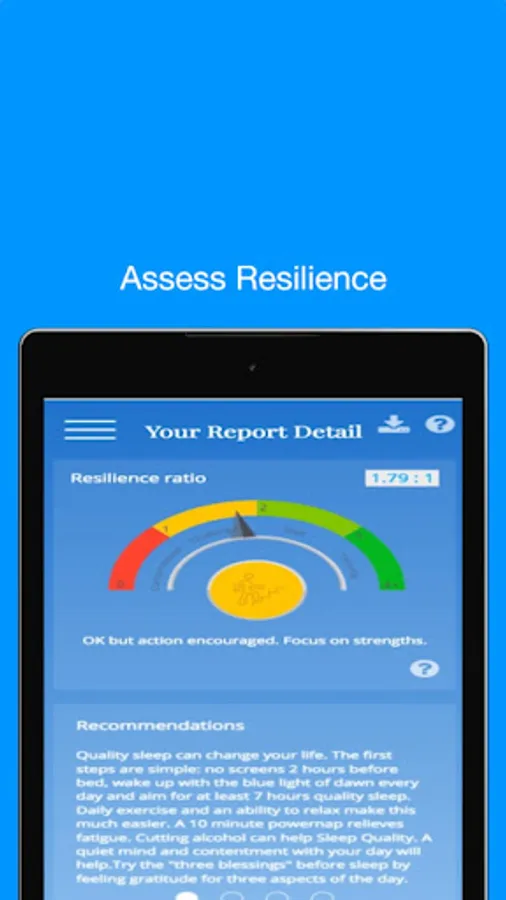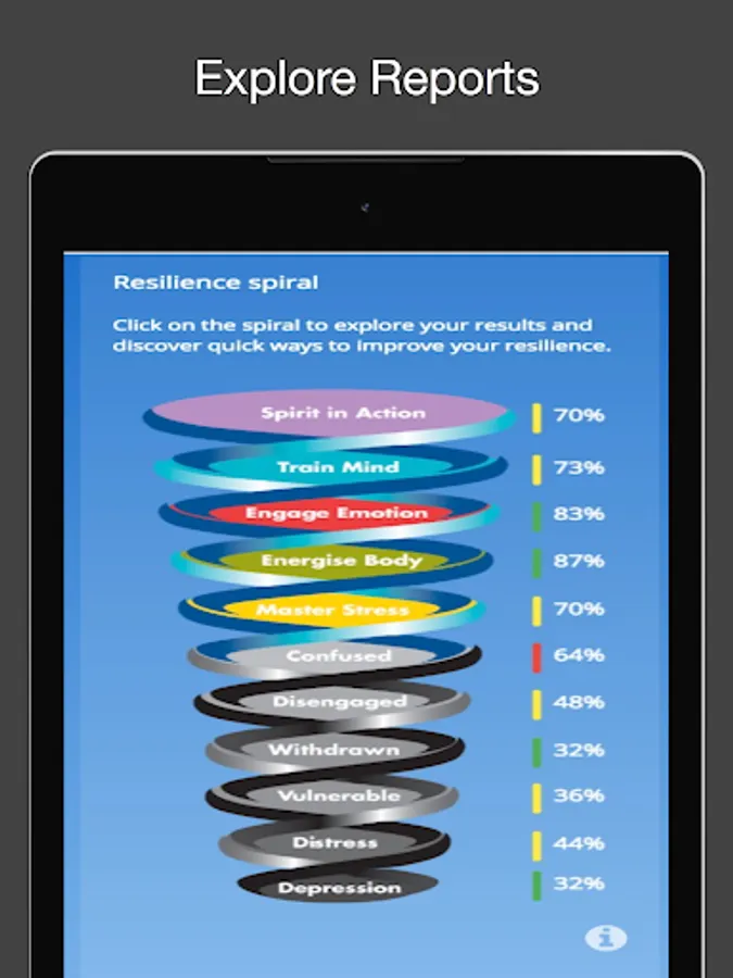 The Resilience Diagnostic measures 11 categories and 60 factors of resilience. Includes dynamic self-coaching.