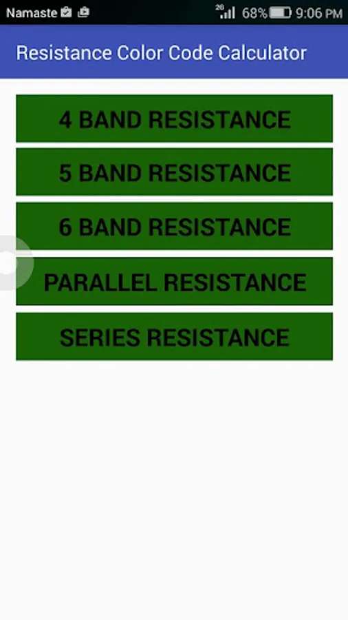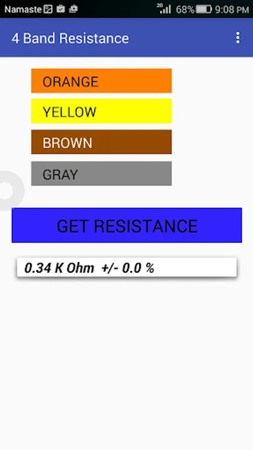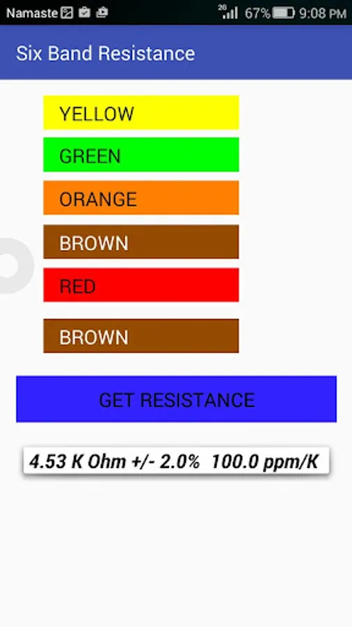 This the best application for the calculation of resistance value of Resistance having 4 band, 5 band , 6 band colour code. This application calculator also calculate the equivalent resistance of Parallel or Series Resistance