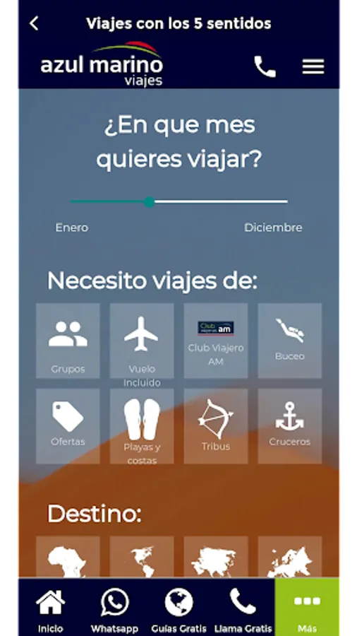 The best traveling APP for before, during and after your trip. Travel utilities and travel booking. In the Agencia Azul Marino Viajes we like to travel to any corner of the world. You can travel alone, or choose one of the group trips. We like active tourism, getaways to distant countries, multi-adventure trips, remote tourist destinations. We offer trips for boyfriends, but also trips for singles, or maybe you prefer to travel on your own, our travel offer will not fail to surprise you. Do you need a travel agency? Call us for free, we will look for the trip of your dreams, a unique experience!