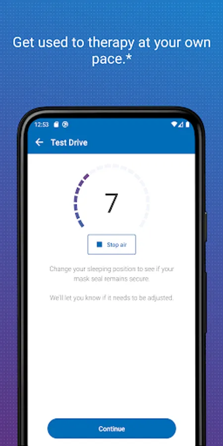 Whether you set up your equipment at home or in person, myAir helps you get started with confidence and ease. The Personal Therapy Assistant* feature provides interactive voice-guided instructions to help you set up your equipment and fit your mask. myAir's Test Drive* feature helps you get comfortable with therapy using your machine at different levels of air pressure. The app also offers a Library of helpful videos and guides that show you how to set up your specific AirSense or AirCurve machine and ResMed mask, as well as how to get comfortable on therapy.
