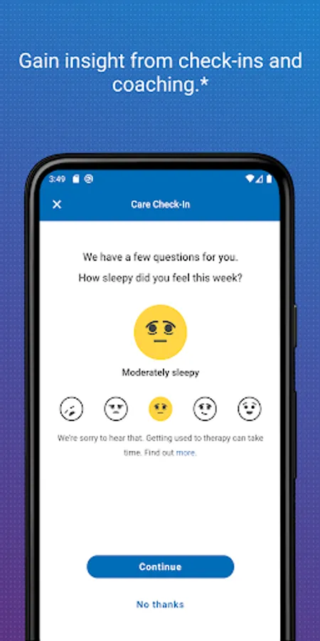 Along the way, you'll get email and push notifications that encourage and support you. With regular check-ins*, myAir proactively prompts you to see how your therapy is going and provides coaching if you have problems. With your prior consent, myAir also shares your therapy insights with your healthcare team* so they can be more connected to your care.