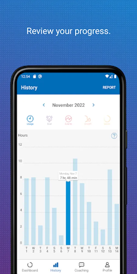Getting used to therapy can take a little time, but with the right support you can enjoy a great night's sleep. myAir acts like your personal sleep coach. It guides you through therapy and connects you to the support you need, when you need it.