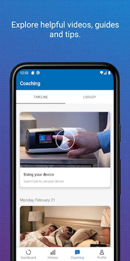 myAir offers tailored coaching, tips and videos to increase your comfort and success. For example, if you have problems with your mask seal, myAir will provide tips about how to fix it. The app also offers a full Library of helpful videos and guides to answer common questions.