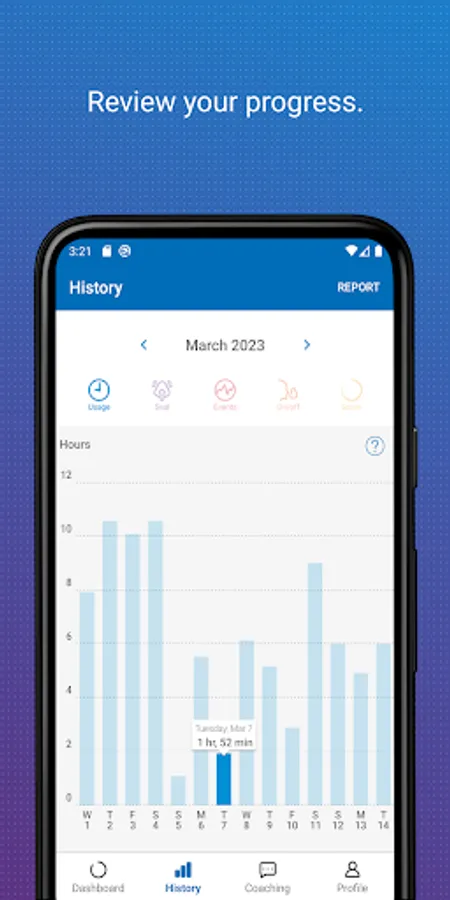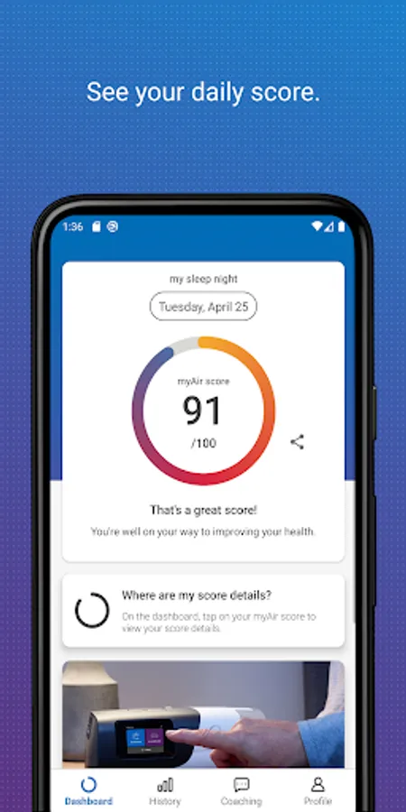 Whether you're new to CPAP or a long time user, myAir allows you to easily follow your progress. After each therapy session, your Air10 machine automatically uploads data to myAir. You can then sign in and view important information about your therapy at your convenience.