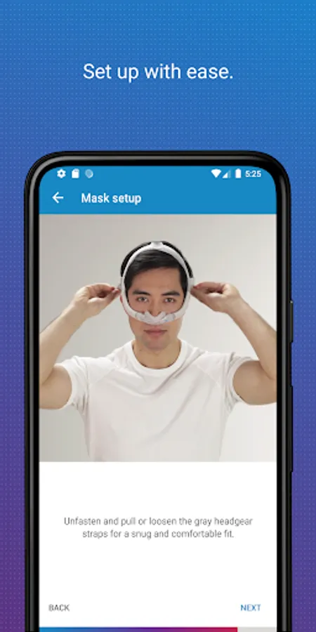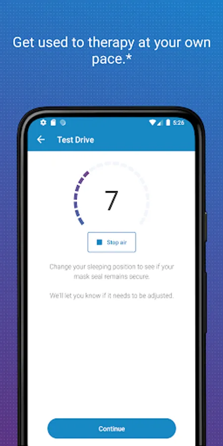 Whether you set up your equipment at home or in person, myAir helps you get started with confidence and ease. The Personal Therapy Assistant* feature provides interactive voice-guided instructions to help you set up your equipment and fit your mask. myAir's Test Drive* feature helps you get comfortable with therapy using your machine at different levels of air pressure. The app also offers a Library of helpful videos and guides that show you how to set up your specific AirSense or AirCurve machine and ResMed mask, as well as how to get comfortable on therapy.