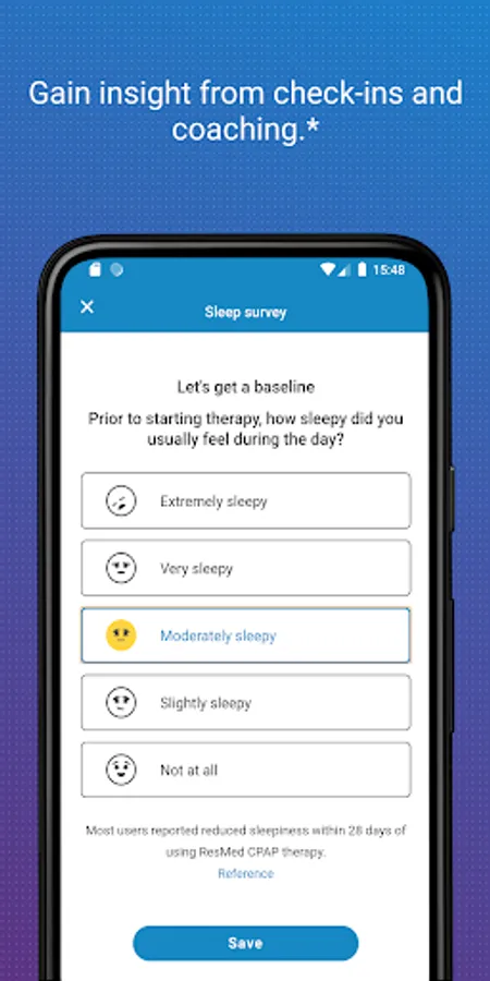 Getting used to therapy can take a little time, but with the right support you can enjoy a great night's sleep. myAir acts like your personal sleep coach. It guides you through therapy and connects you to the support you need, when you need it.