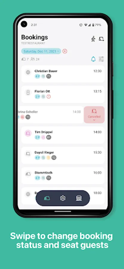 - Change status of bookings with swipe gestures