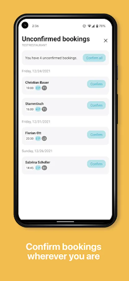 - Observe upcoming reservations and your restaurant's occupation