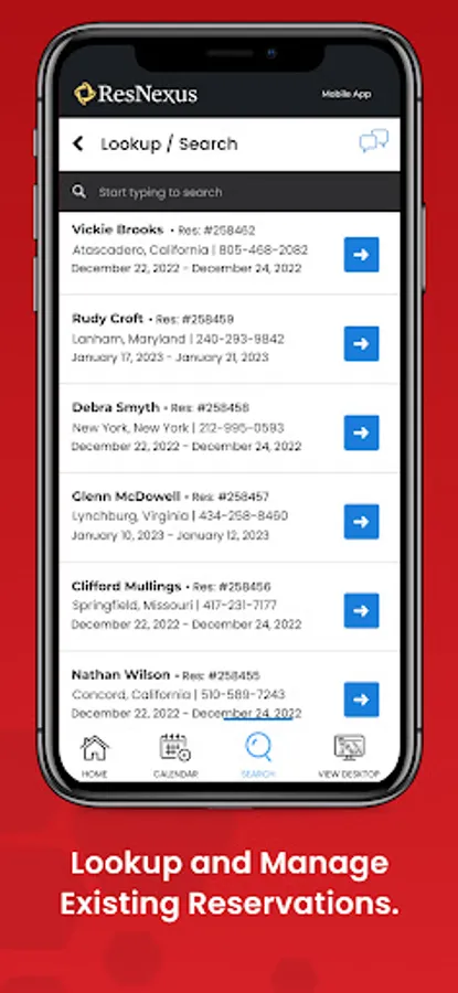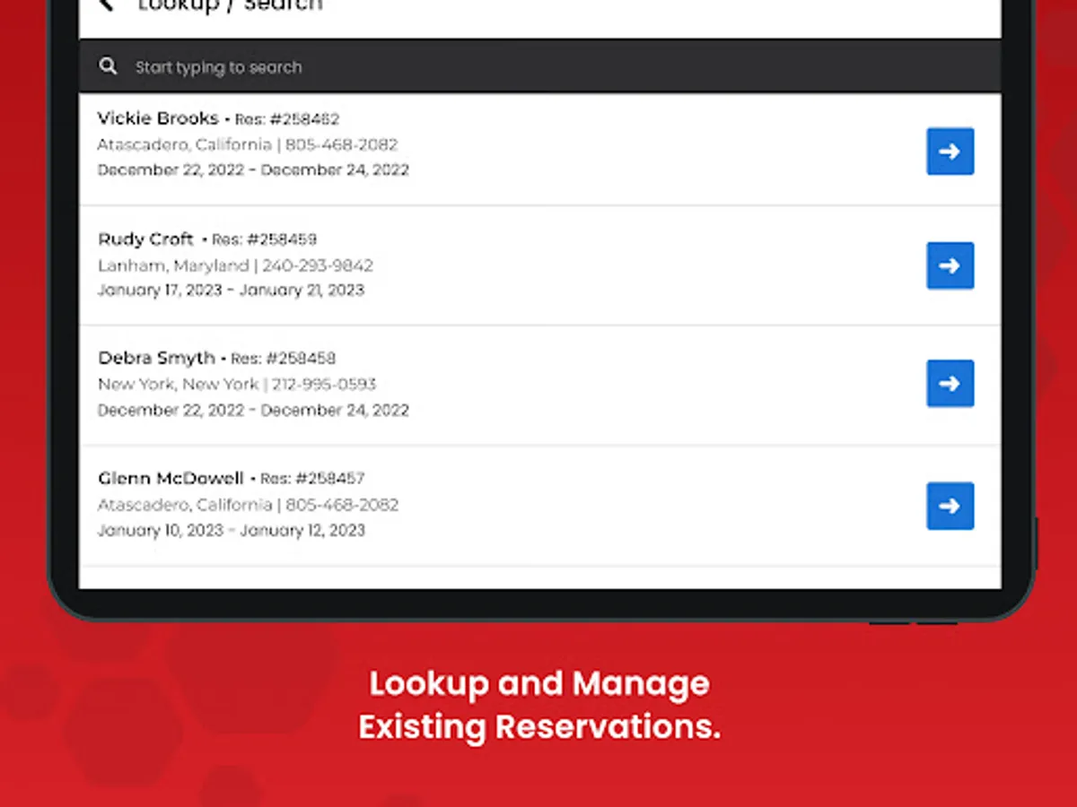 Add new reservations and collect payments directly on the app. It automatically syncs with your ResNexus system!