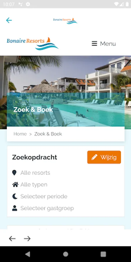 The resort has a lovely swimming pool with a real sandy beach. There is a pool bar, sunbeds and play equipment for the children. In short, a resort for young and old! At Resort Bonaire you can book luxurious and stylish apartments (max. 8 persons) and hotel rooms (max. 2 persons). With the help of our app you can easily find all the necessary information for your stay.