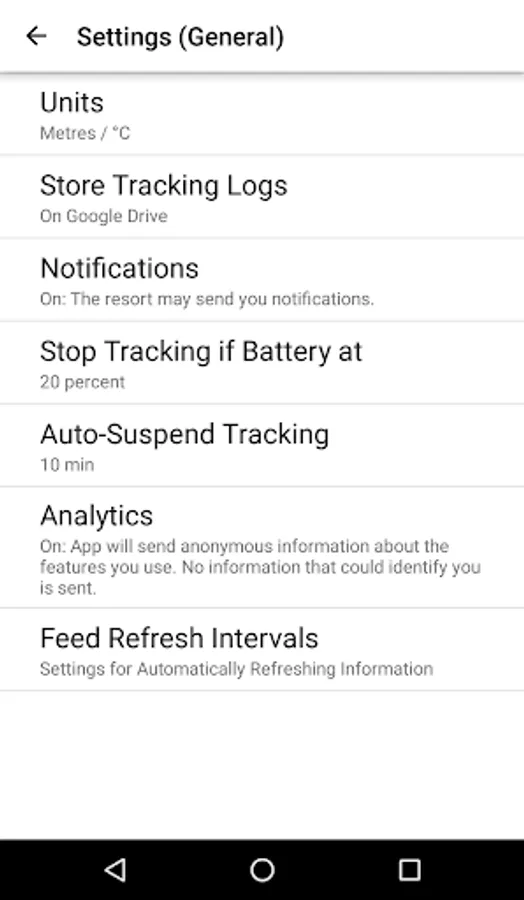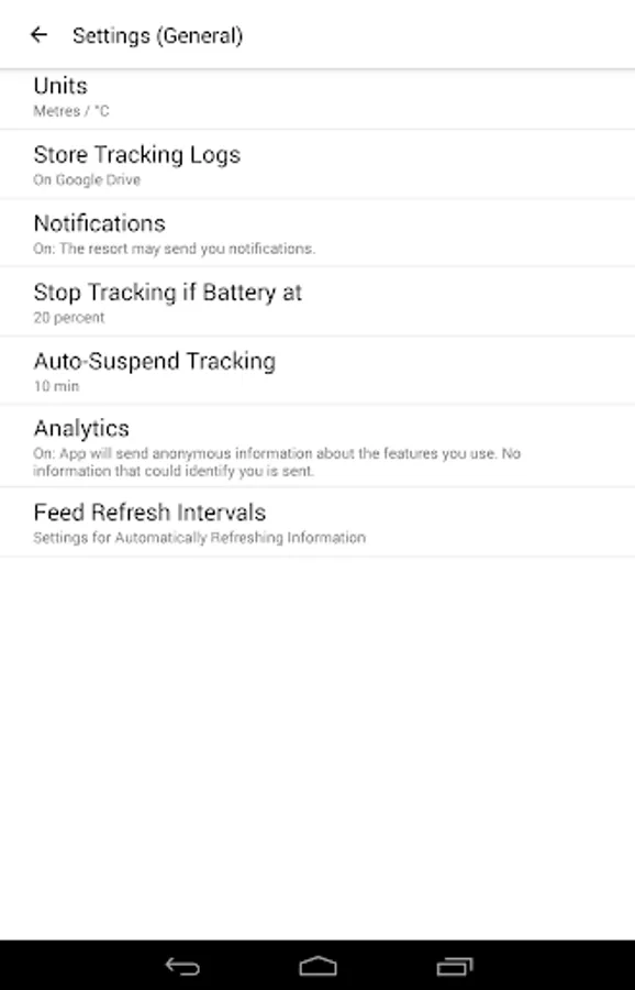 • Record your runs and log vertical feet and distance. Display your tracks and replay your runs on the trail map. Email images to friends, post them to Facebook and other social media, or view them in Google Earth. Store your logs on Google Drive and view them on all your devices.†