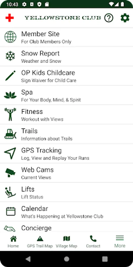 • Easily locate and contact key places at the resort and in the village with the built in directory.