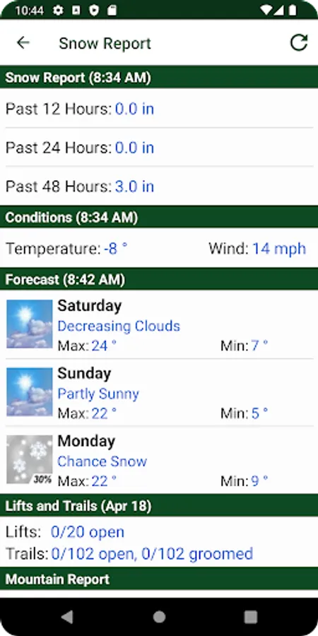 • Find up-to-date information about the mountain, including snow conditions, weather, and webcam images.
