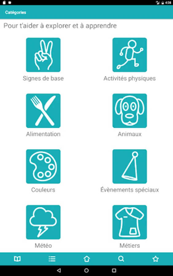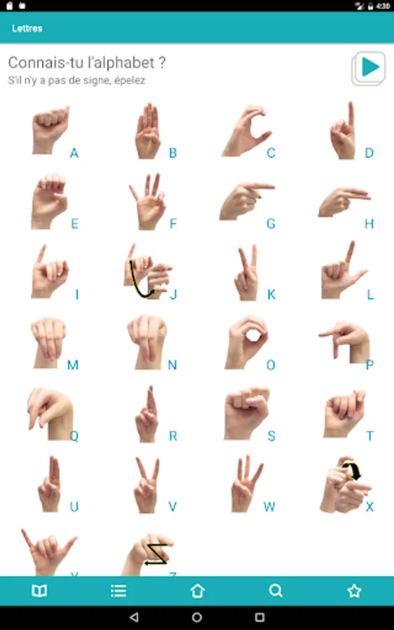 - By themes (Alphabet, Numbers, Food, Colors, Trades, etc.), with the addition of a hundred phrases in LSQ!