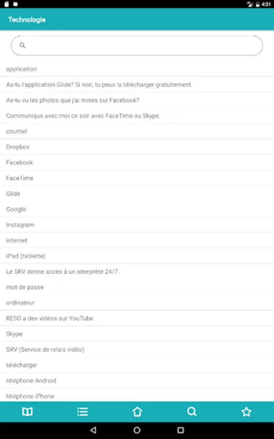 This application, designed to run on tablets and smartphones iOS and Android, is organized into two categories: