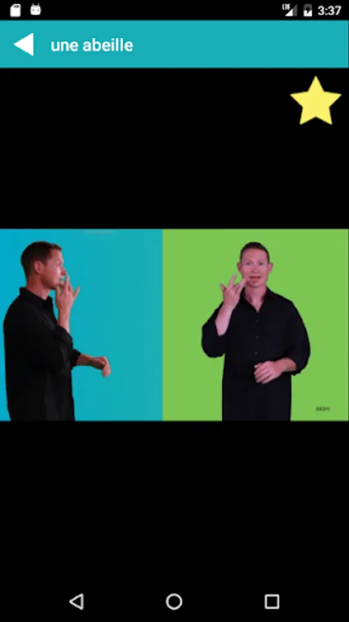 For each word selected, a video showing an illustration, the sign in LSQ and the word written in French will be displayed on the screen.