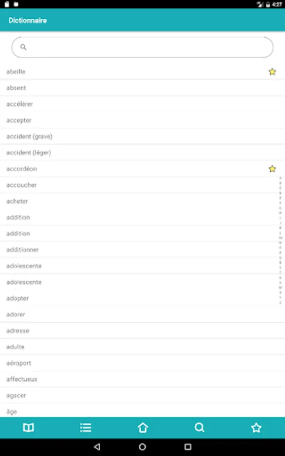 It is also possible to search with a system of auto-completion (by typing the first letters, the list of words is displayed as and when).