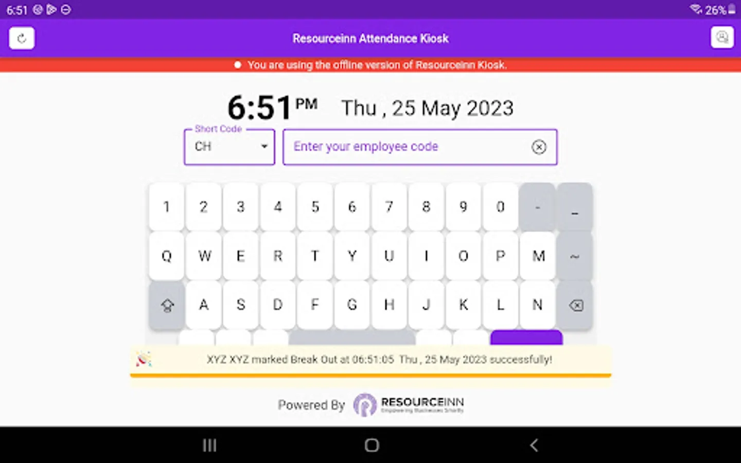 Introducing Kiosk, a powerful app designed for effortless real time attendance management. With Kiosk you can record your employees attendance offline ensuring punctuality and accurate records even in remote locations. No more concerns about late attendance or loss of attendance records. Just connect the application to the internet once a month to sync the attendance.