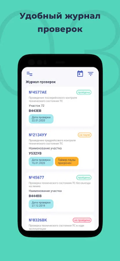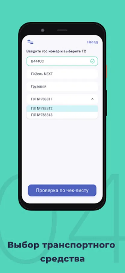 The application allows the employee responsible for the pre-trip / post-trip inspection to carry out the entire cycle of work on monitoring the technical condition of vehicles, eliminating paperwork.