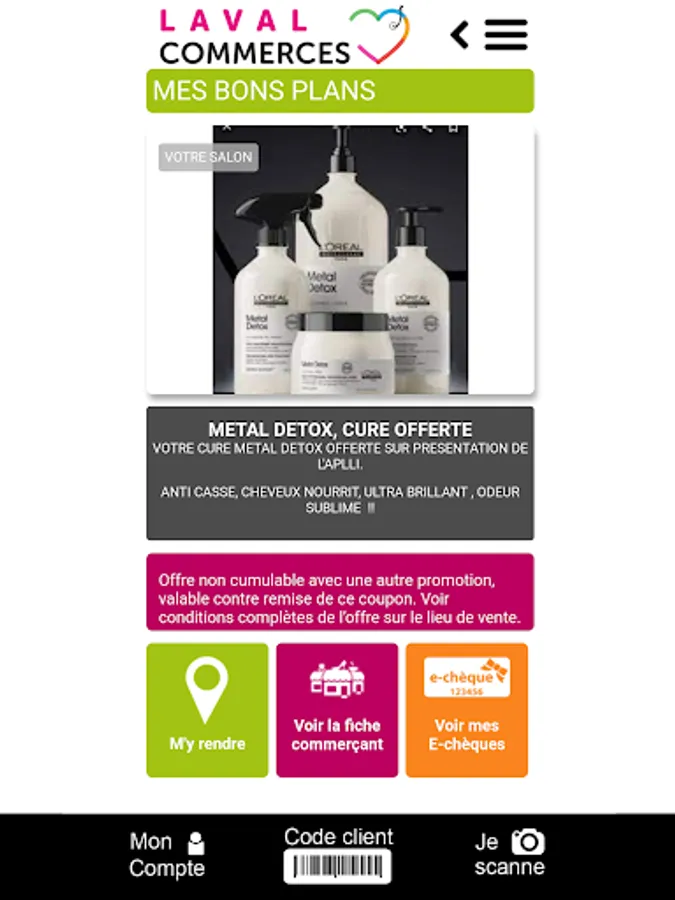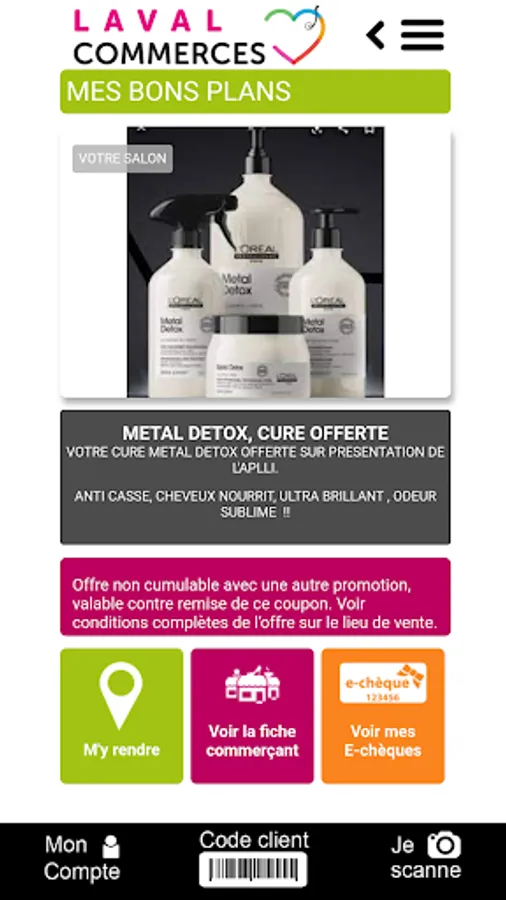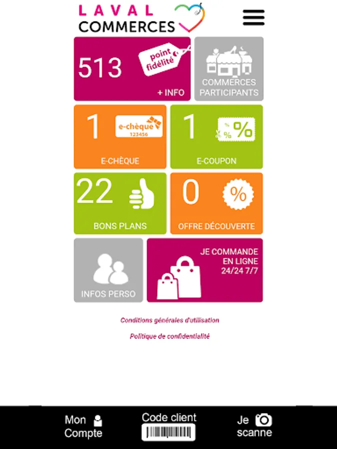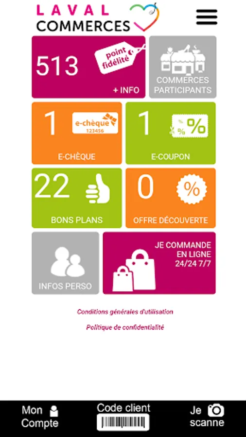 By registering on Laval Commerces you enter the privileged club of Laval consumers who will receive by push notification personalized offers from merchants from whom you have collected loyalty points at least once.