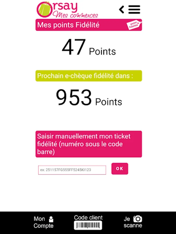 By registering on ORSAY MES COMMERCES, you enter the privileged club of consumers who will receive personalized offers by push notification from merchants from whom you have collected loyalty points at least once.