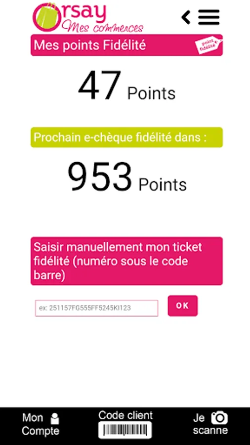 With each purchase in store ask for your loyalty points. Present your "customer code" on the screen of your smartphone to your merchant to collect your loyalty points.