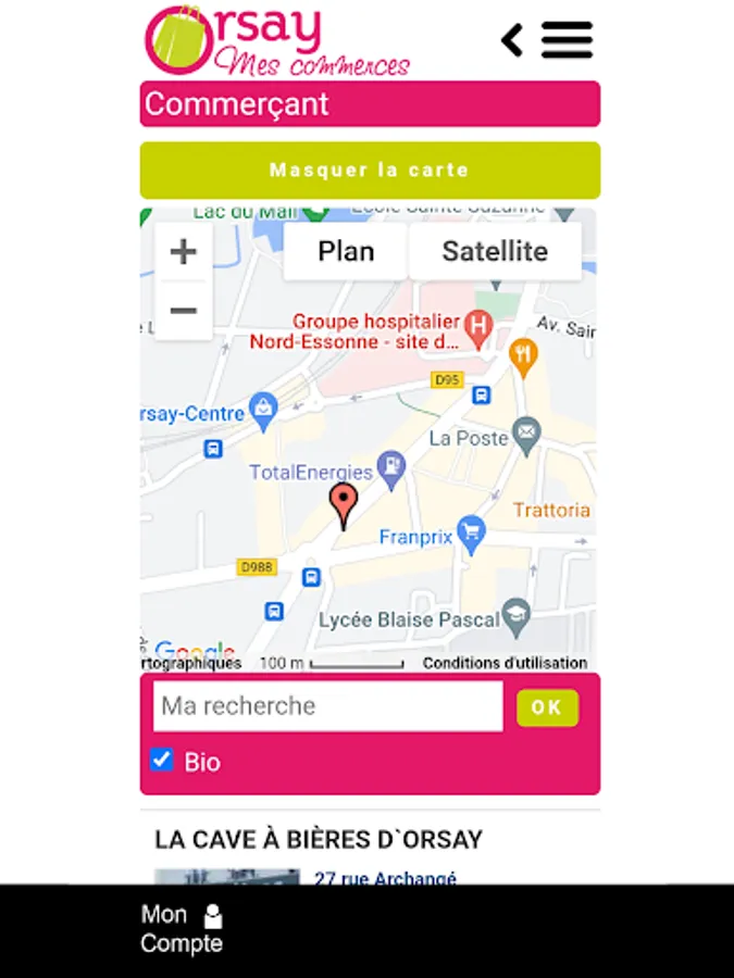 In your ORSAY MES COMMERCES app, all the participating merchants are geolocated and inform you of their opening hours, their specialties, brands sold in stores, trades, etc. and click on their web, Facebook, Instagram or twitter links to find out more more.