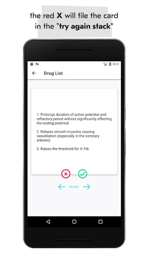 As a study tool, you can quiz yourself on any card using the flashcard feature. If you get the answer right, you can place the card in the “Answered Correctly” pile. If you get the answer wrong, you can place the card in the “Answered Incorrectly” pile. This allows you to isolate the incorrect cards and quiz yourself on your weak points later.