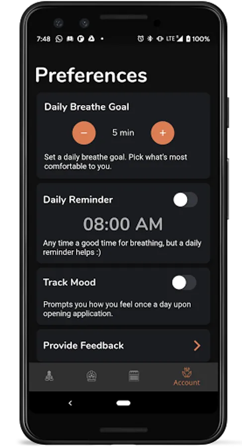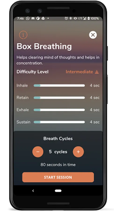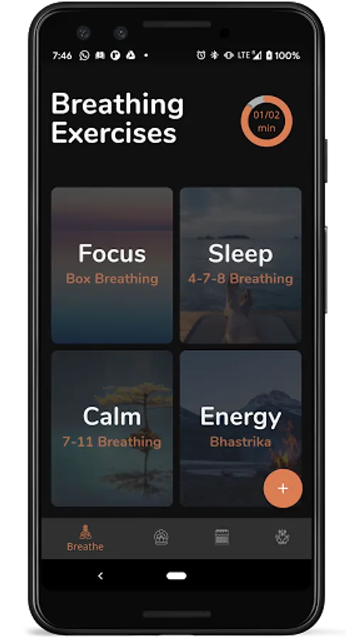 Try Box breathing for focus, 4-7-8 breathing for sleep, 7-11 breathing for relaxation. Make your own preset if you feel like.