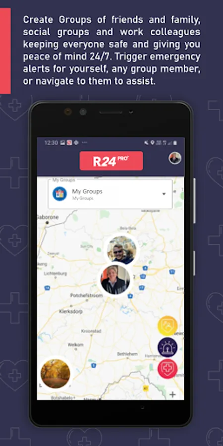 · Create Groups of members such as family, friends, and work colleagues, to ensure their safety and well-being