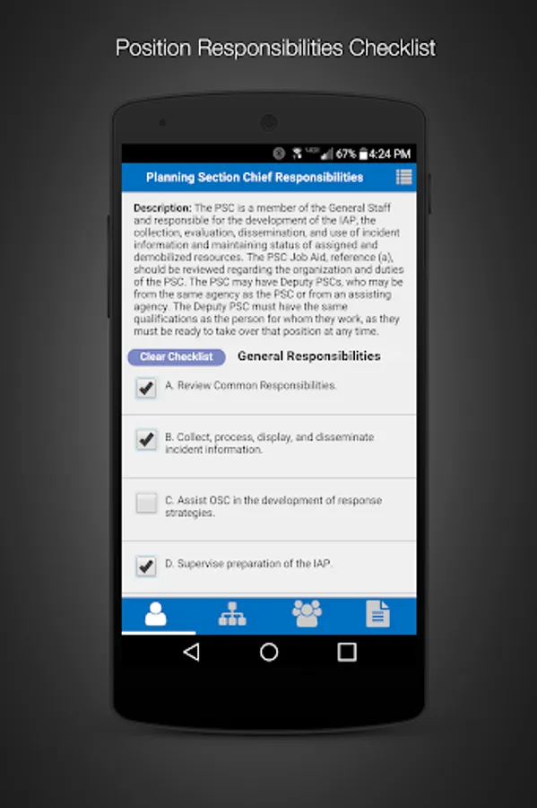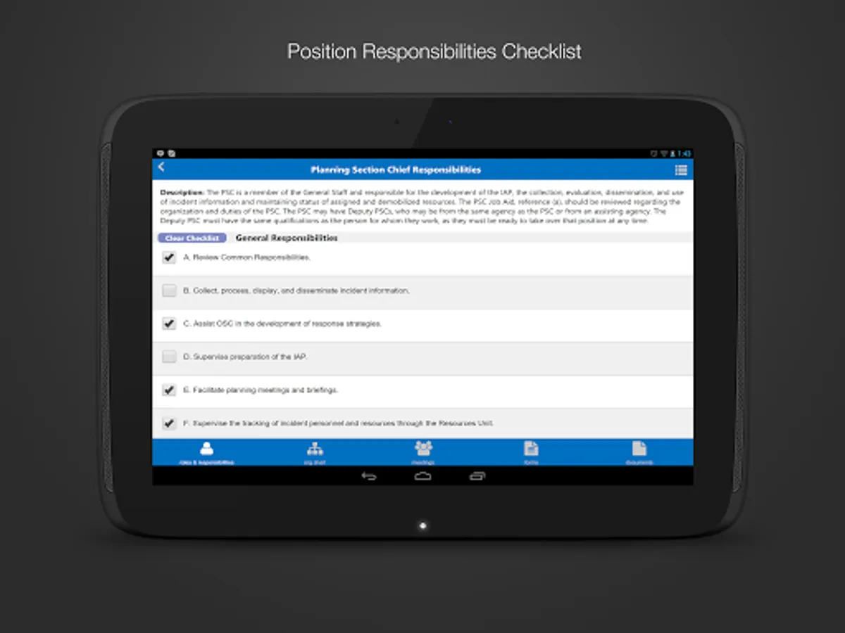 • A comprehensive listing of ICS Positions with detailed role descriptions and checklist of responsibilities.