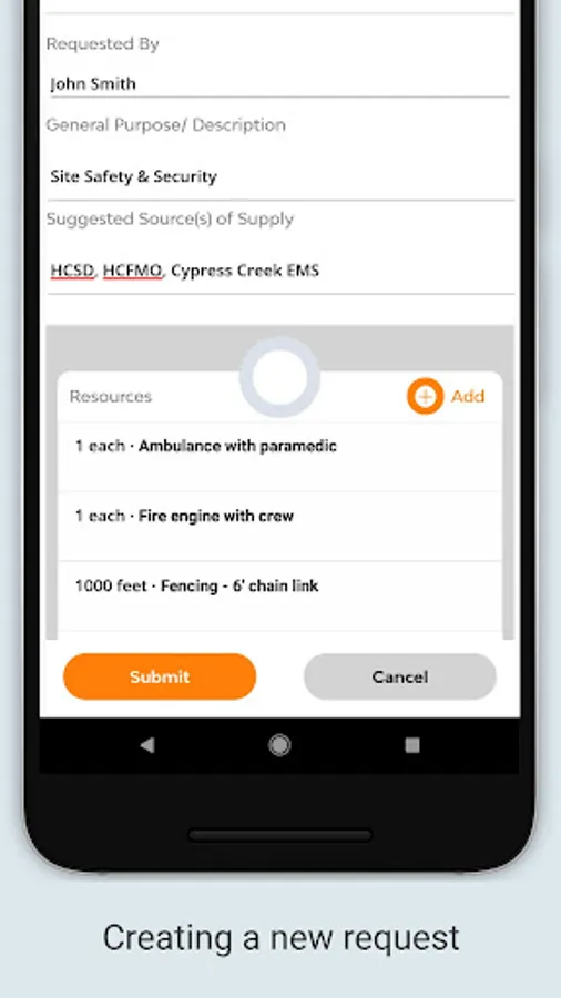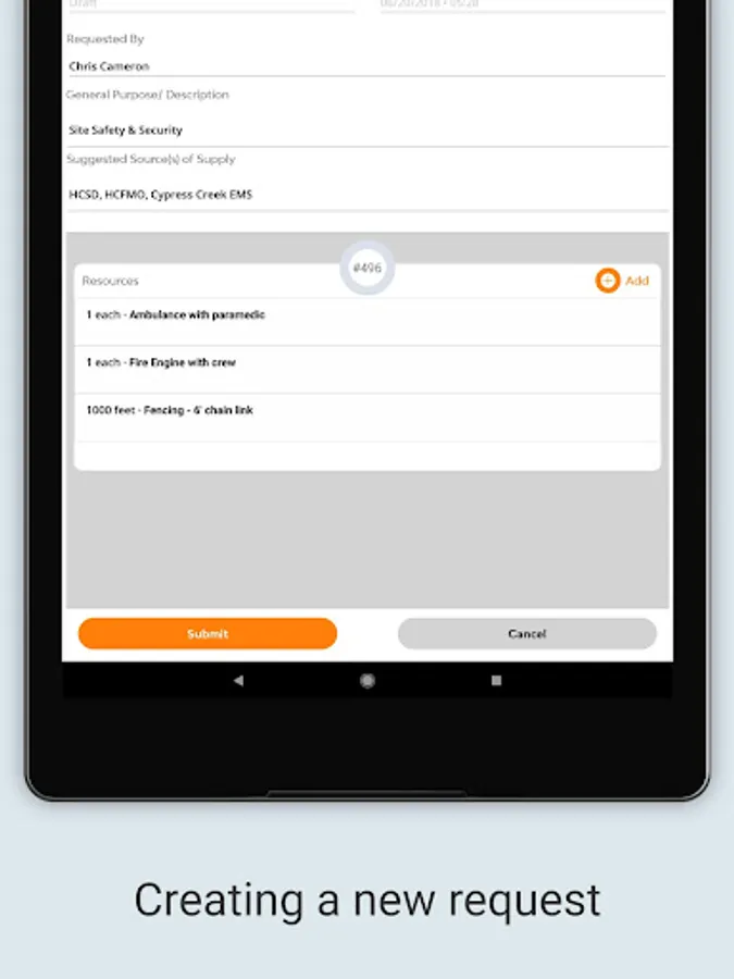 The Resource Request Mobile Application is the latest addition to TRG’s suite of mobile software services. Resource Request is simple to use and gives field responders the ability to easily create resource requests on their mobile devices that are submitted directly into the Incident Action Plan software for approval and ordering. Field responders are able to track their requests and receive alerts as the request advances in the ordering process.