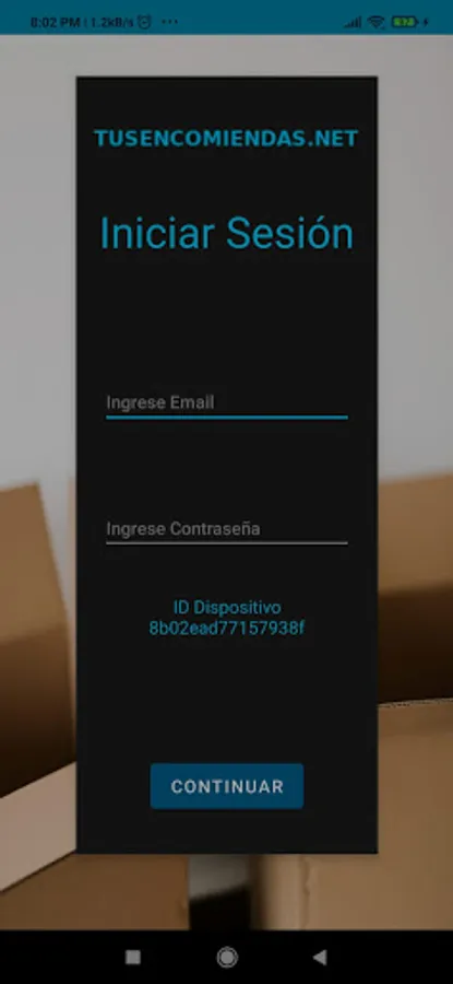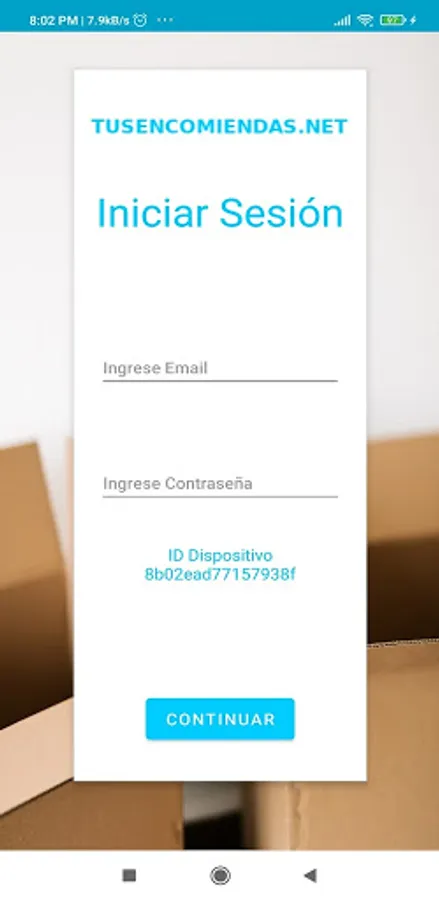 1- Register your device in TusEncomiendas.net with the data of "Device ID"