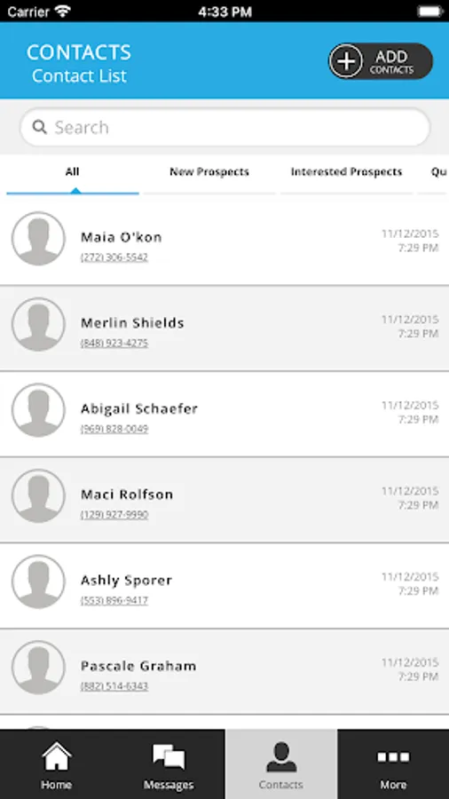 • You can add / import contacts from your devices