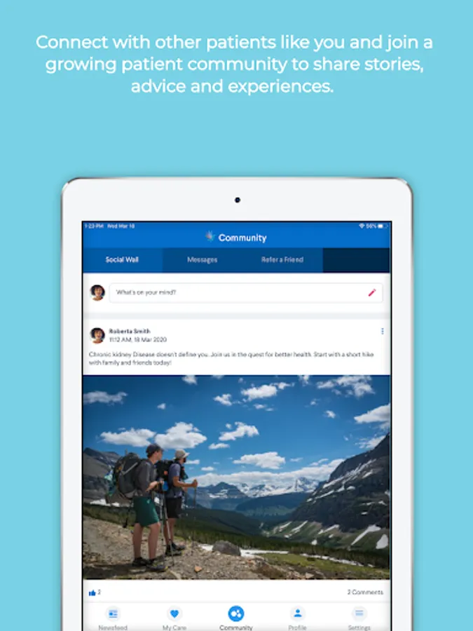 • Connect with other patients like you and join a growing patient community to share stories, advice, and experiences.