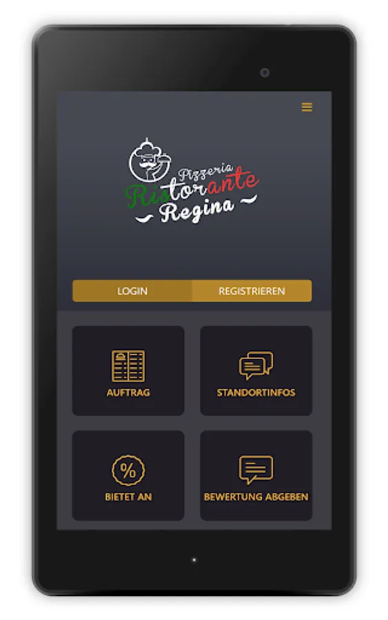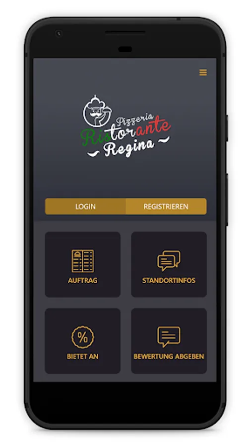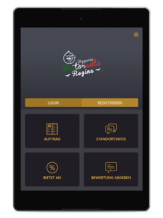 With the Pizzeria Regina mobile app, you can order food to be delivered or to take away.