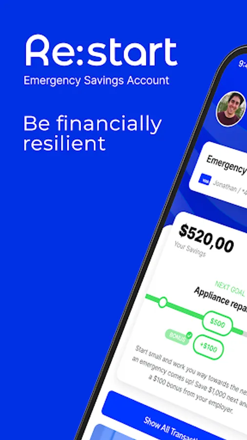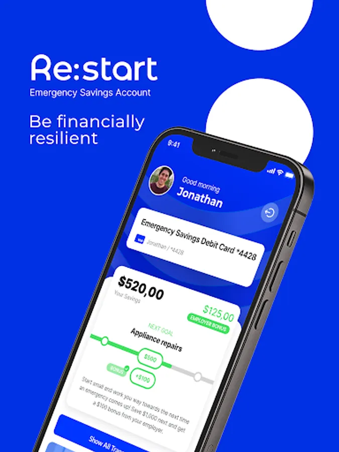 Set up your savings, track your progress, and apply for a debit card within your Re:start Savings app.