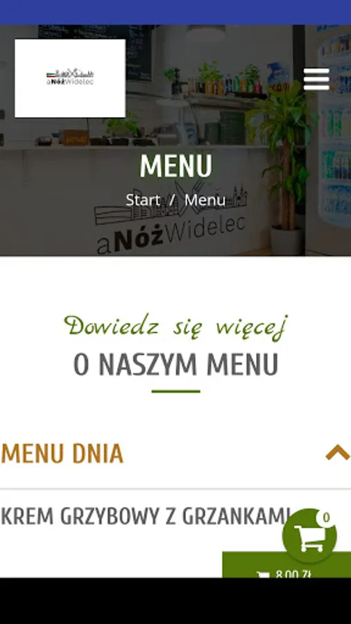 An application for ordering food from the A knife Widelec restaurant in Wrocław.