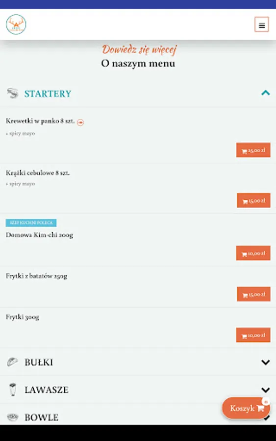 Application for ordering food from the restaurant Abdul cuda na stick in Lublin.