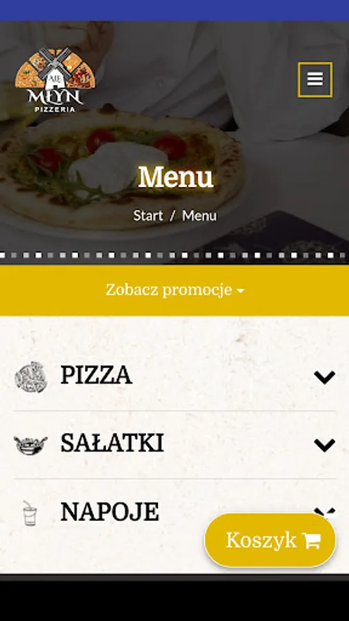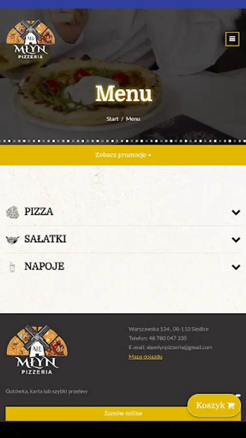 An application for ordering food from the Ale Młyn Pizzeria restaurant in Siedlce.