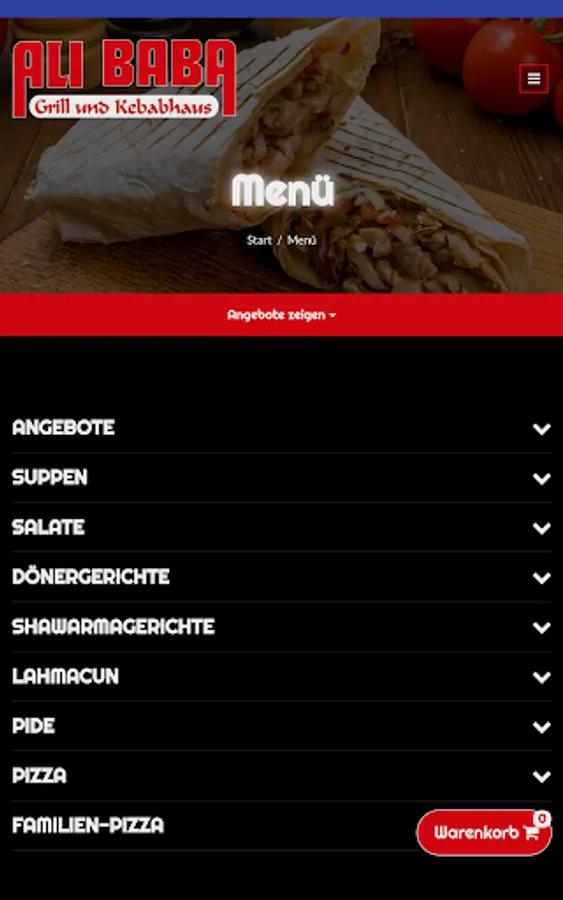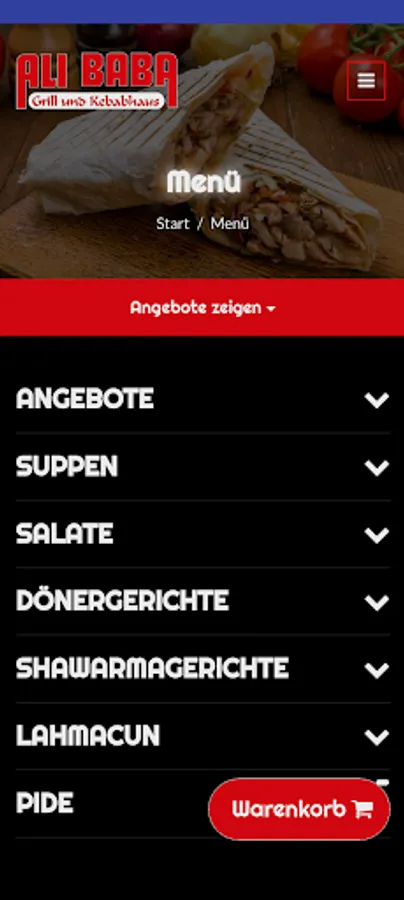 App for online ordering for Ali Baba Grill & Kebabhaus in Ingolstadt.