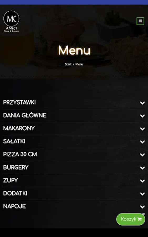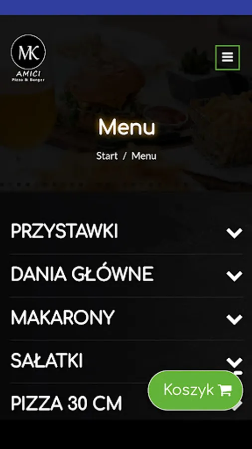 Application for ordering food from the Amici MK-Pizza&Burger restaurant in Regulice.